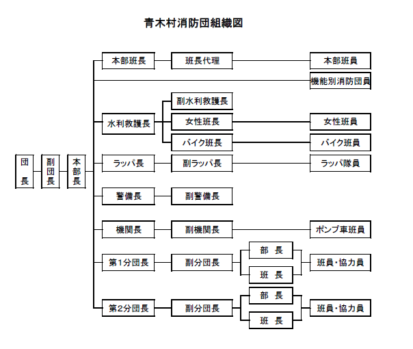 青木村消防団は団員定数250名(消防団協力員・機能別消防団員含)で活動しています。