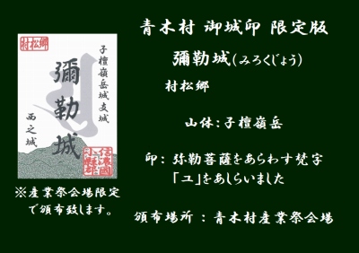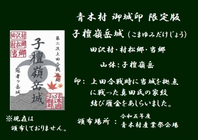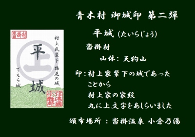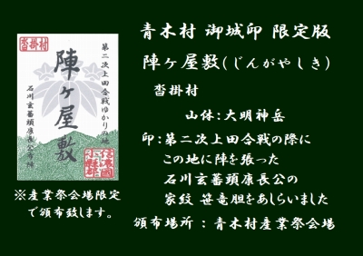 皆さんに知って頂くために、青木村「御城印」を頒布しています。