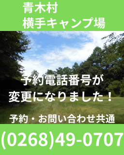 横手キャンプ場予約電話番号:0268-49-0707